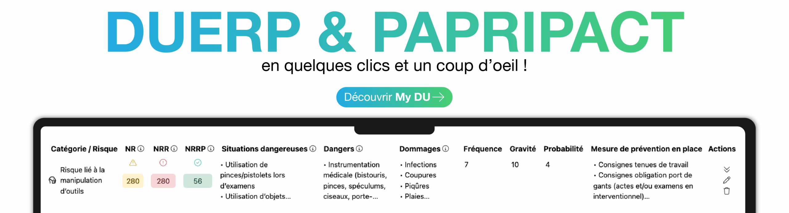 Simplifiez la création du Document Unique d’Évaluation des Risques Professionnels (DUERP) et gérez les risques professionnels en quelques clics grâce à une base de données préremplie et une intégration du PAPRIPACT.